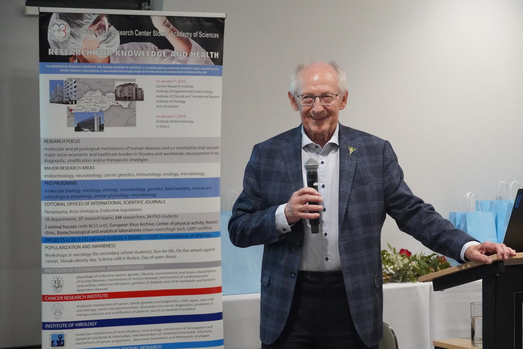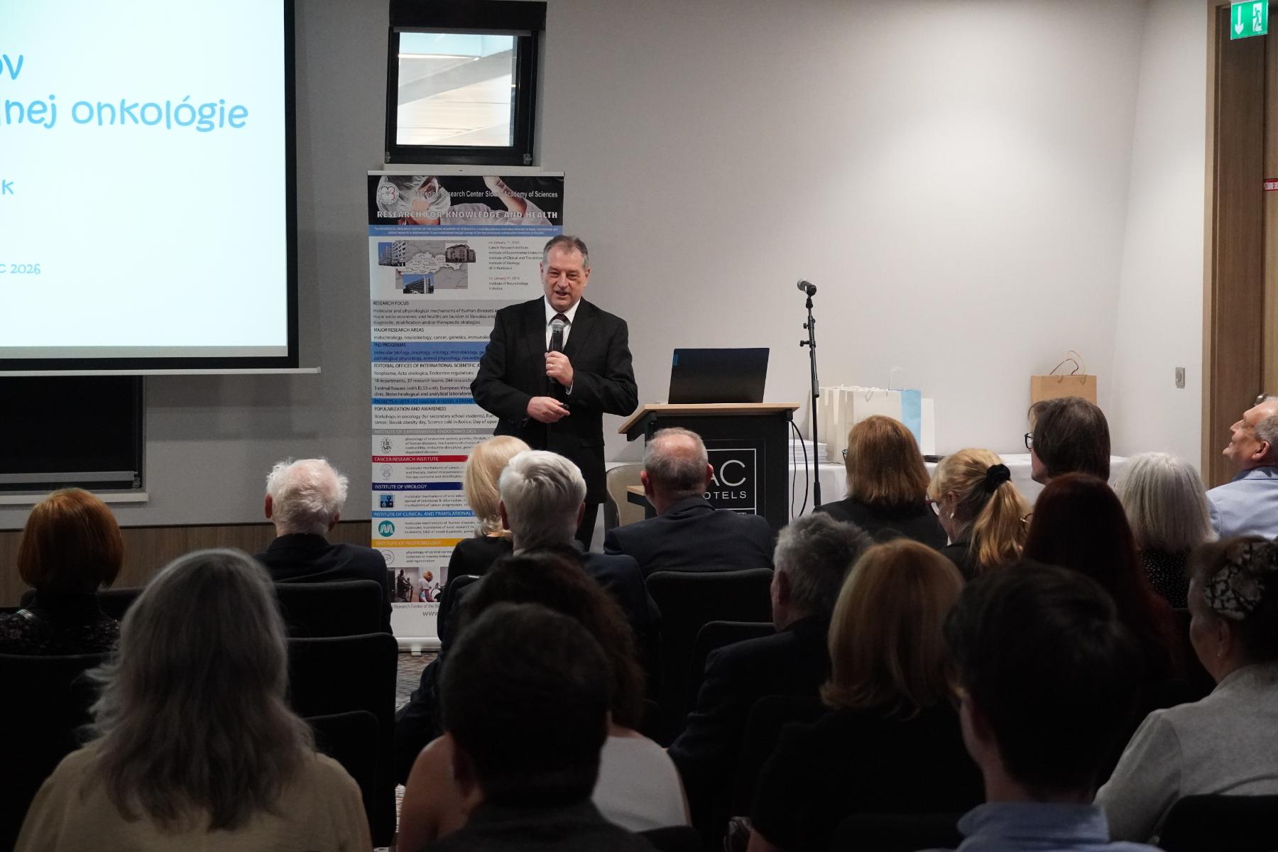 „Našou misiou je boj s onkologickými ochoreniami na úrovni diagnostiky aj liečby. Dnes už nebojujeme symbolickým mečom, ale poznaním molekulárnych mechanizmov,“ prihovoril sa účastníčkam a účastníkom súčasný riaditeľ ústavu Dr. Miroslav Chovanec.