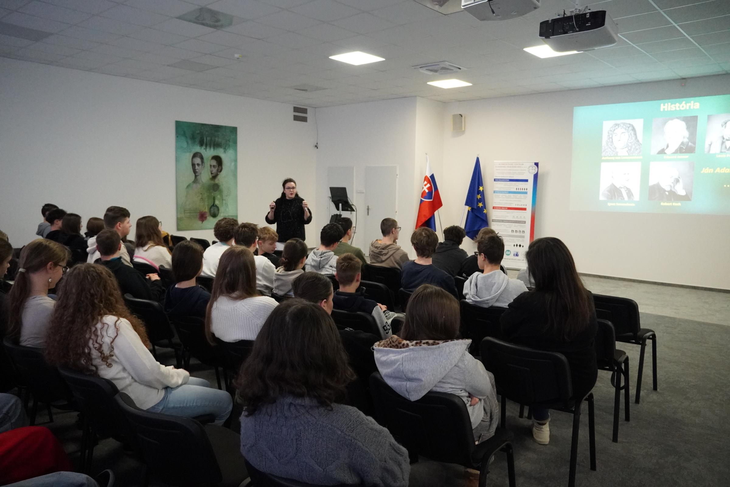 Prednášku o tom, či sa máme báť patogénov, ale aj priamu skúsenosť s prácou v našich laboratóriách získali 16. januára deviataci a deviatačky Cirkevnej základnej školy Dobrého pastiera v Žiline. Takmer päťdesiat žiakov a žiačok prišlo na návštevu do Biomedicínskeho centra SAV, v. v. i. (BMC SAV) v Bratislave vďaka iniciatíve ich učiteľa biológie a chémie Stanislava Uhrina.